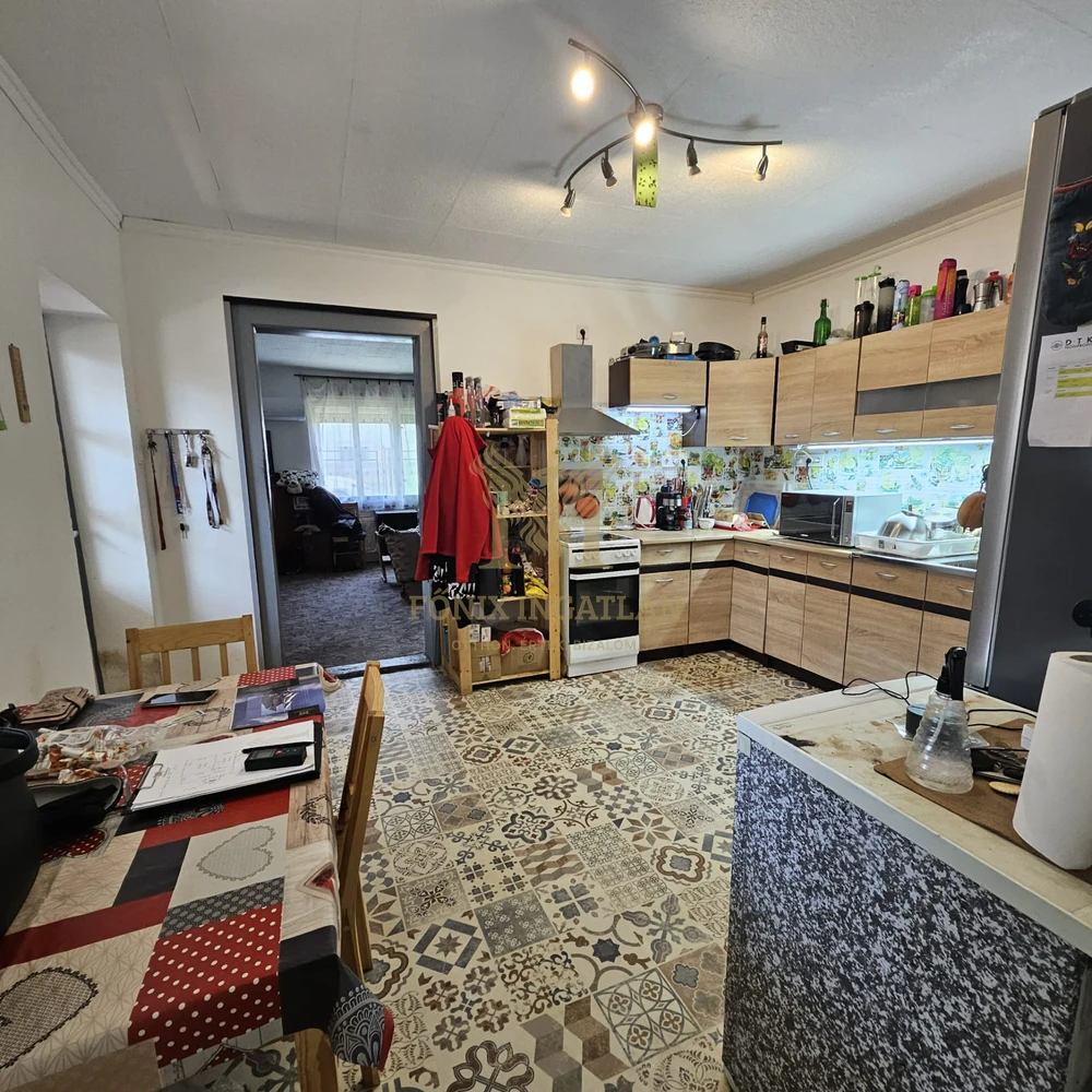 A 65 m²-es lakóház egy tágas, 2070 m²-es telken helyezkedik el, amely bőséges lehetőséget kínál kertészkedésre, állattartásra vagy akár további fejlesztésekre. Az udvaron egy 12 m²-es melléképület is található, nyári konyhával és spájzzal, valamint egy garázs pincelejáróval és több, állattartásra alkalmas ól is rendelkezésre áll.